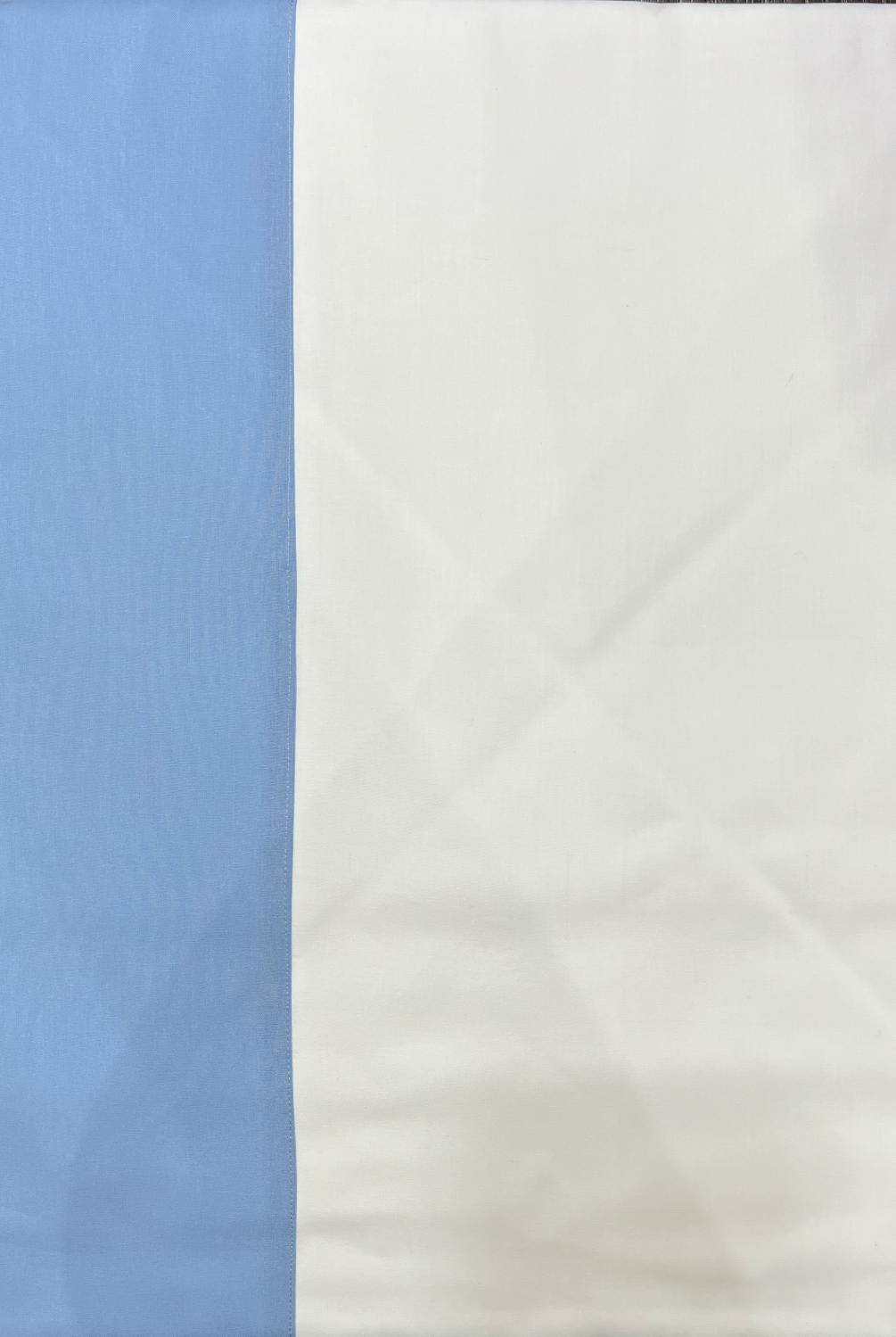 Completo lenzuola matrimoniale in 100% puro cotone con fondo bianco e balza a contrasto in 4 varianti disponibili.