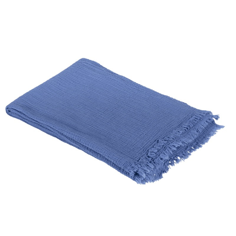 Copriletto in puro cotone stone washed con frange. Perfetto come elemento di biancheria da posizionare su divano o letto per completare l'arredo.