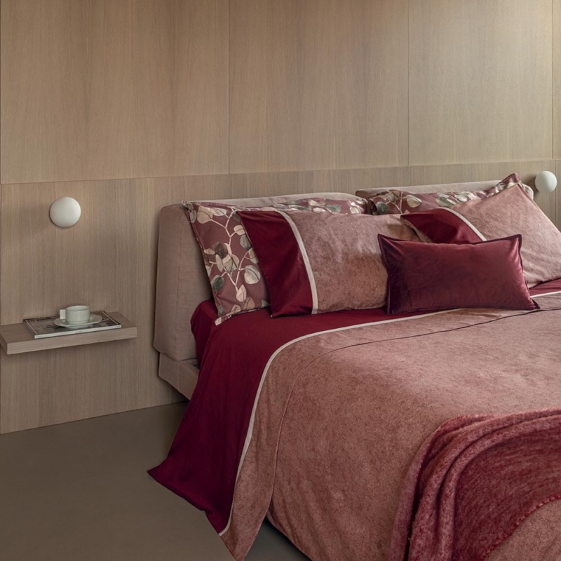 Scopri la trapunta matrimoniale Fazzini Galuchat in finta tinta unita colore Burgundy, realizzata in percalle di puro cotone di altissima qualità. Un capolavoro di stile e morbidezza, pensato per regalare calore, comfort e un tocco di raffinatezza alla camera da letto.